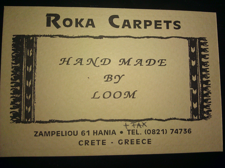 While staying in the western town of Chania, we were taken under the wing of a local, well-known and well-loved weaver named Mihalis Manousakis, the owner of Roka Carpets (http://www.cretegazette.com/2008-05/chania-carpets.php). This charming and fascinating man invited us into his 600-year-old Venetian building to sit and watch while he weaved his magic on a 400-year-old loom with the assistance of his cat—sharing with us some of his own homemade Raki from his vineyard in nearby Rethymno, regaling us with stories of his life, the history of weaving and the meaning of the traditional patterns in the rugs. He also shared all of his favorite restaurants and haunts in the city, and told us about not-to-miss sites and lovely drives we could take into the mountains and surrounding countryside.