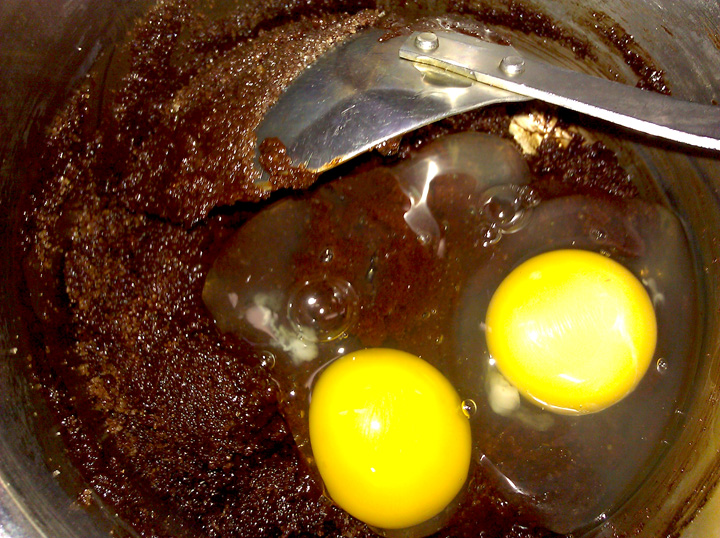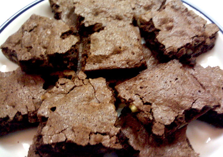 Hmmm, now for the “other,” meaning dessert. I still had some walnuts not used in the salad, some unsweetened baking chocolate in the pantry, and butter, sugar, flour, eggs and vanilla. Sounds like brownies to me!