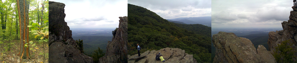 After some good food and a peaceful night’s sleep in the country, we headed out the next morning to the Blue Ridge Parkway area to take a hike up to Hanging Rock. An amazingly beautiful, but rather steep (at least for a non-mountain goat city slicker like me) hike up, up, up, takes you to a series of magnificent rocks, soaring like birds of prey out over the mountainside and overlooking the valley below. Though it’s a bit scary to climb out to the edge, the view is worth the effort of a very cautious and well placed foot.