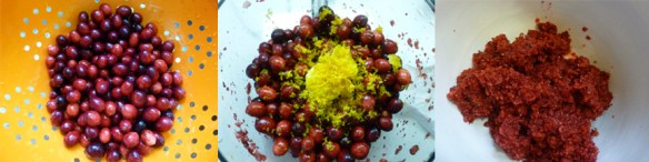 I’ll share some cocktail recipes when the liqueur is ready, but meanwhile here’s how you make this always welcomed gift. This recipe is from the 2008 December issue of Cooking Light and it’s a winner! This year I’m going to add a twist to it by making a double batch and putting some of my favorite flavors, orange and spice, into one of the batches…I think it will make a different and interesting liqueur! I’m adding the zest of two oranges, and in a risky last minute move, I’ve decided on these spices: a 2-inch stick of cinnamon, one whole star anise and 5 cloves (I think I’m still in the five spice frame of mind, somehow). I love anise flavored liquors and am hoping this will make a unique and tasty addition, but only time will tell. I’d recommend on your first try that you go with the straight cranberry liqueur recipe, or you can try the addition of some orange zest with no spice. I’m making myself the guinea pig, and I’ll let you know how my experiment turns out!