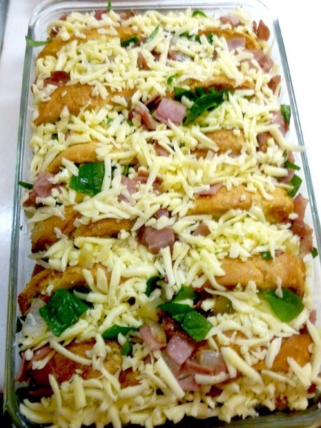 readytobake Published November 24, 2011 at 648 × 864 in Holiday Happiness: Ham, Fontina and Spinach Bread Pudding Sprinkle on the cheese and you’re ready for the oven!