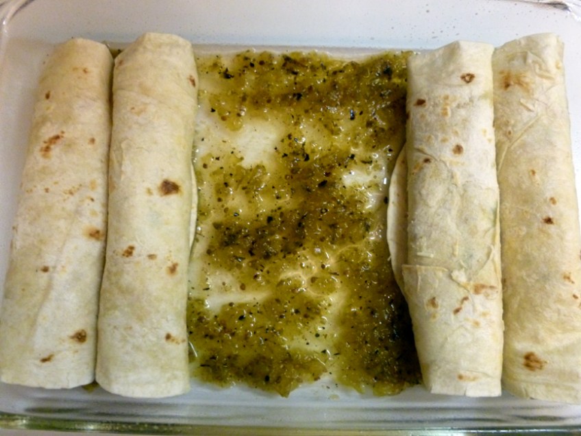 rolled and placed 2 Published January 13, 2012 at 864 × 648 in Friday the 13th and Easy Enchiladas Verdes Place each filled and rolled tortilla seam side down in the dish on top of the salsa verde.