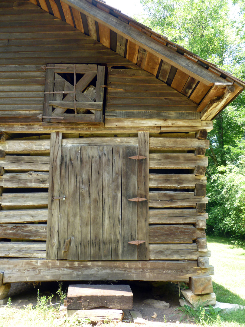 Of particular interest to me was the double log cabin, which has two spacious rooms with fireplaces, connected by a dogtrot in the middle. This was the original home that the first owners lived in. It had various uses and tenants over time.