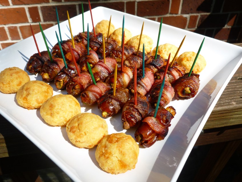 Bacon Wrapped Dates with Apricot and Pistachios
