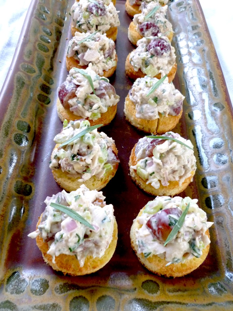Chickensalad1 Published September 26, 2012 at 810 × 1080 in Encore! (More party recipes!) Tarragon Pecan Chicken Salad on Brioche Crostini…need I say more? But I will!