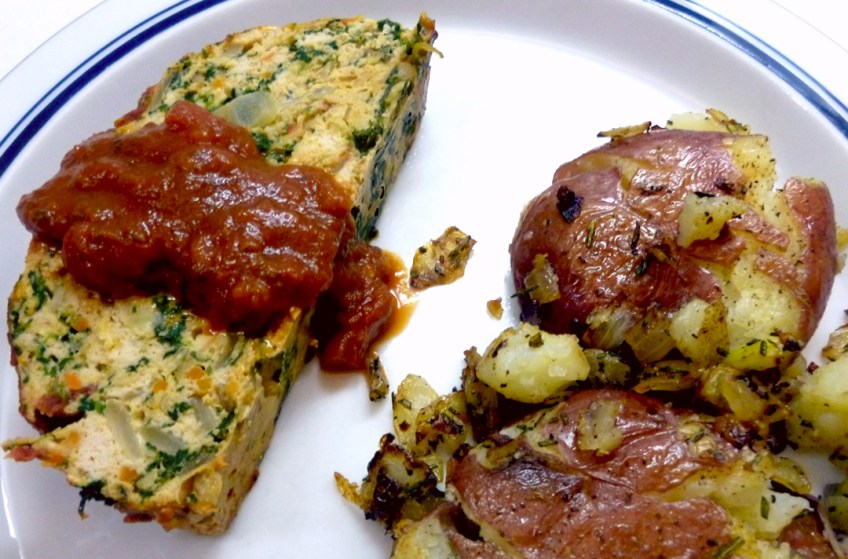 plated3 Published December 5, 2012 at 1080 × 712 in Herbed and Veggied Turkey Meatloaf NIght time shots are very cruel, but you can get the idea of what a great plate o’ food this is!