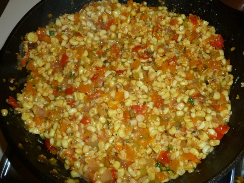 finished Published August 29, 2013 at 1024 × 768 in Mock Maque Choux (Gesundheit) First round of veggies and corn.