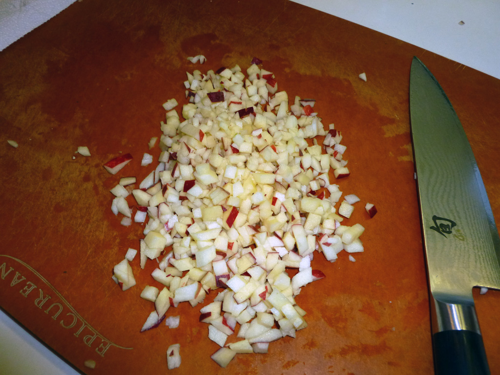 apples Published November 14, 2013 at 1024 × 768 in A is for Apples: A Savory Bread Pudding and an Apple Oat Walnut Bar Your finely chopped apples should look like this.