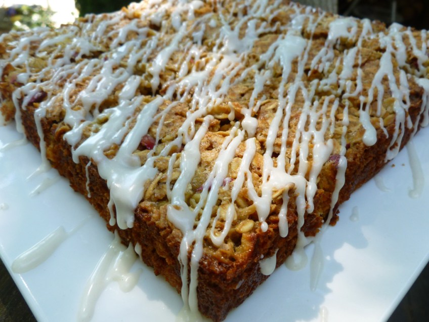 finished bars late fall on plate Published November 14, 2013 at 1024 × 768 in A is for Apples: A Savory Bread Pudding and an Apple Oat Walnut Bar Drizzle with cider glaze and enjoy!