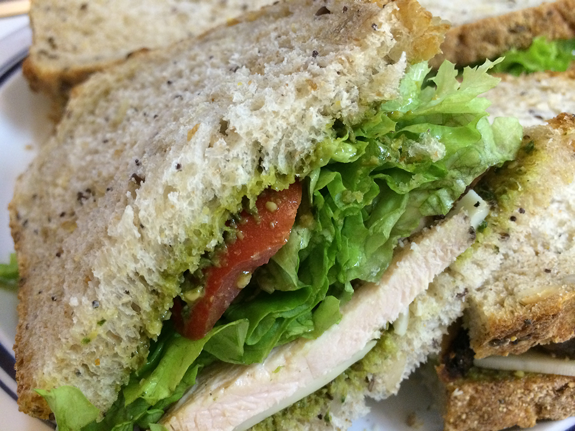 sandwichfinished2 Published April 15, 2014 at 1152 × 864 in Magical Mountain Day: Waterfalls, Wine and Raptors Top with another pesto spread slice of bread…