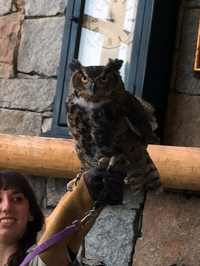 Zeus1 Published April 15, 2014 at 864 × 1152 in Magical Mountain Day: Waterfalls, Wine and Raptors This is the mighty Zeus, the Great Horned Owl.