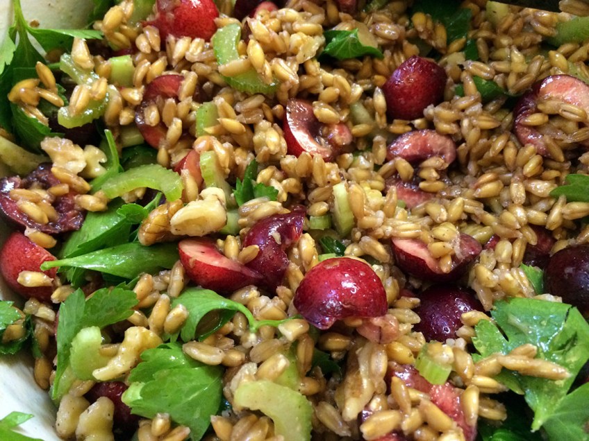 FinishedFarroCherrySalad Published July 3, 2014 at 1152 × 864 in Camping and Hiking Part II, Fruited Farro Salad, and Grilled Za’atar Spiced Chicken with Peppers and Onions