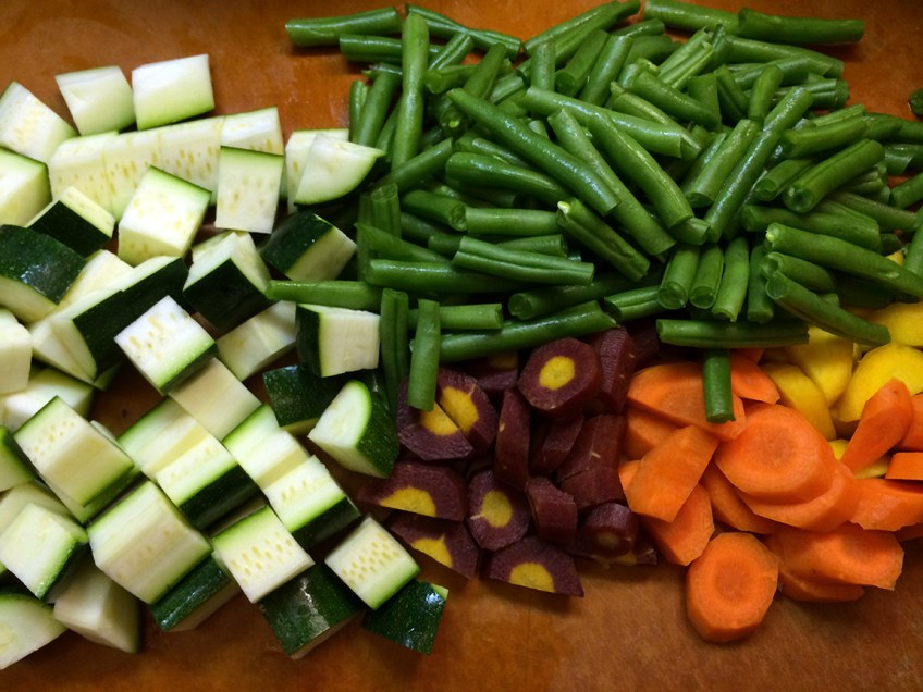 veggies Published September 30, 2014 at 1152 × 864 in Enter…Fall. Roasted Vegetable and Kale Stew This stew starts with lots of great veggies. The carrots are “rainbow carrots.”