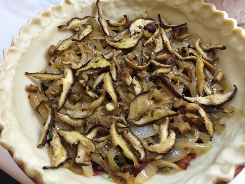 layers Published January 21, 2015 at 1152 × 864 in Rustic Spinach, Pancetta, Wild Mushroom and Caramelized Onion Quiche All layered and ready for cheese and custard.