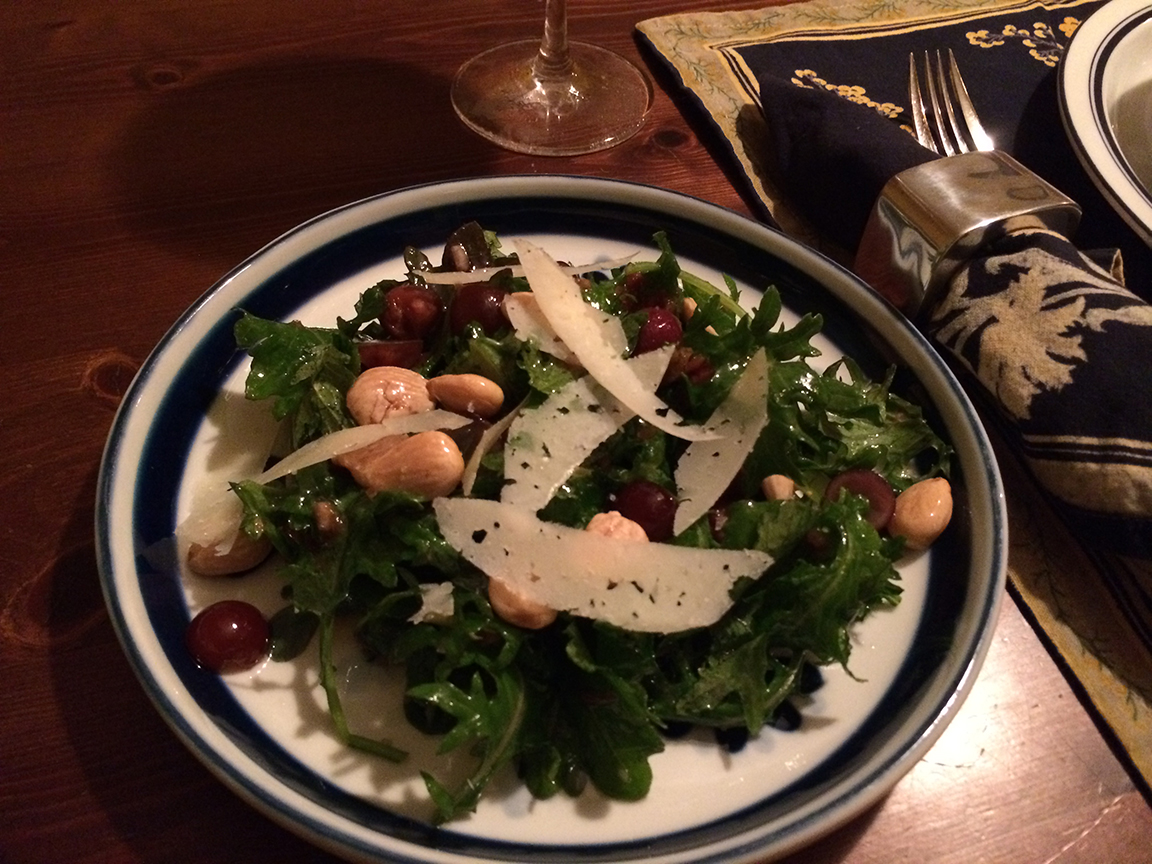 salad Published February 22, 2015 at 1152 × 864 in Time to Catch Up with Some Recipes New and Old A salad of roasted and raw grapes, arugula, almonds and manchego with Saba vinaigrette.