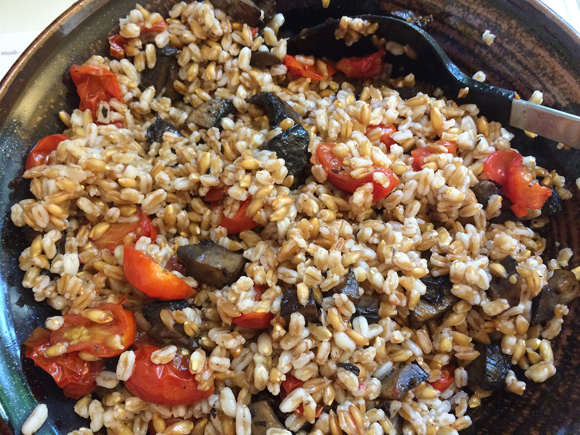 Astirbeforedressing Published July 6, 2015 at 1152 × 864 in Cooling Comforts: Roasted Mushroom and Tomato Farro Salad A quick stir before adding the dressing.