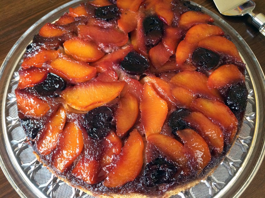 cake1NS_color Published July 19, 2015 at 1152 × 864 in Hurray for Upside Down! Georgia Peach, Bourbon and Cherry-Studded Skillet Cake