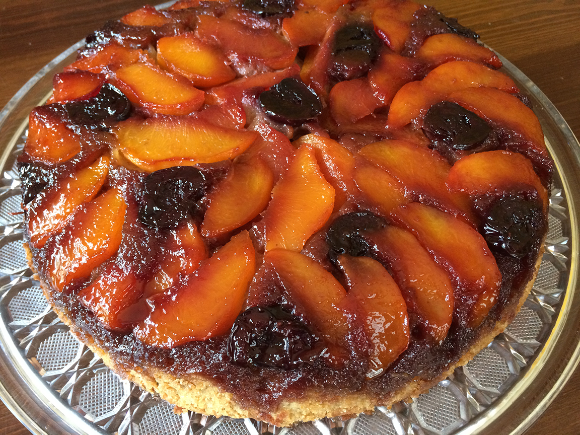 cake5 Published July 19, 2015 at 1152 × 864 in Hurray for Upside Down! Georgia Peach, Bourbon and Cherry-Studded Skillet Cake