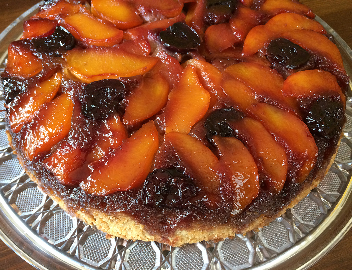 cake6B Published July 20, 2015 at 1126 × 864 in Hurray for Upside Down! Georgia Peach, Bourbon and Cherry-Studded Skillet Cake