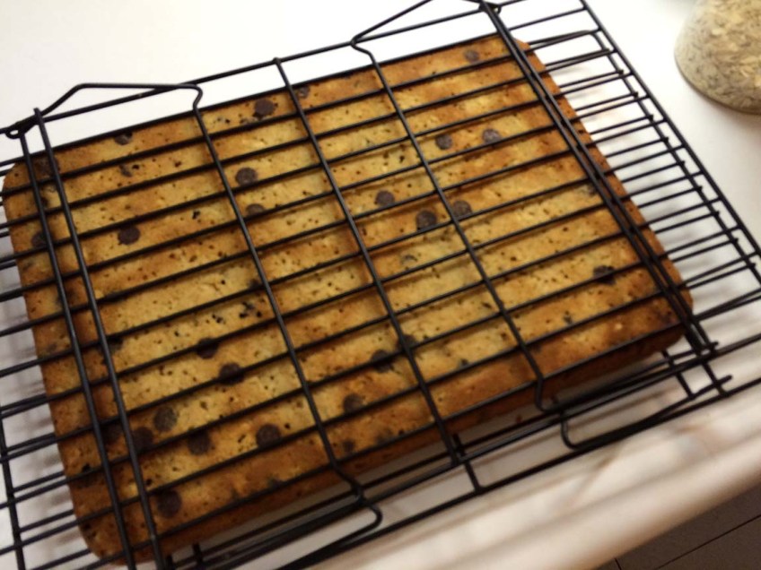 flip 2 Published October 27, 2015 at 1152 × 864 in Treats and Tricks: Spiced Oat and Chocolate Chip Blondies Place a second wire rack on the bottom of the blondies, then carefully invert them again.