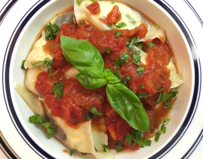 Finishedravioli Published May 23, 2016 at 1600 × 1253 in Herbed Ricotta and Olive Tapenade Ravioli with Tomato Sauce and Fresh Basil