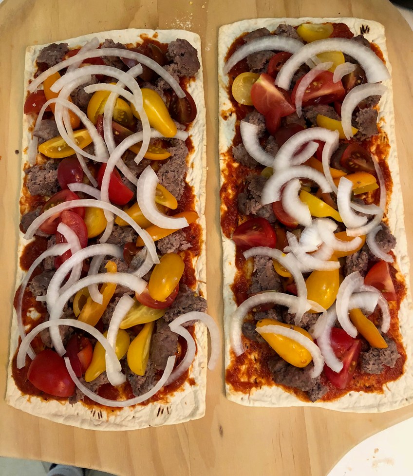 cheeseburgerpizzaprep Published September 26, 2018 at 1224 × 1411 in Easy Peasy Pizzas: Deep South Tuna Melt Flatbread “Pizza” and Variations