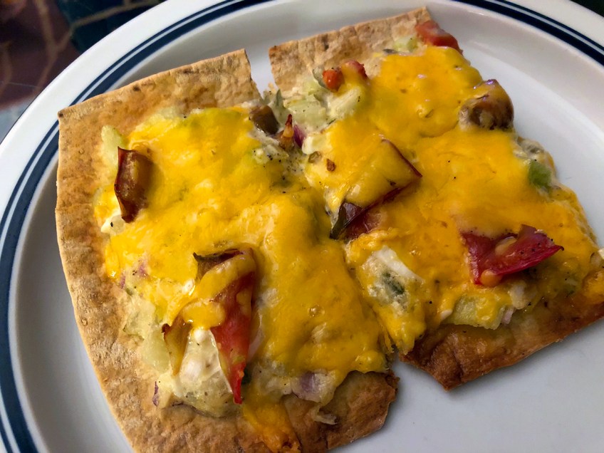 TMPwTomsliced2 Published September 26, 2018 at 1224 × 918 in Easy Peasy Pizzas: Deep South Tuna Melt Flatbread “Pizza” and Variations Slice and leave as is or top with arugula.