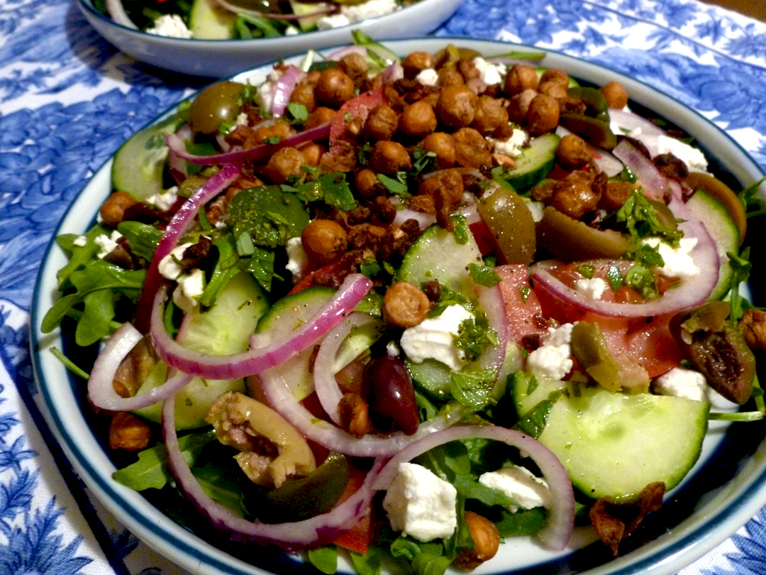 This recipe makes a fantastically full-flavored tart that is good for lunch all by itself, or for dinner served with a side or a salad such as the Mediterranean one in the last post. I would definitely make this for company and will also be modifying it soon, using smaller pieces of the phyllo pressed into mini muffin tins to make appetizer tarts.