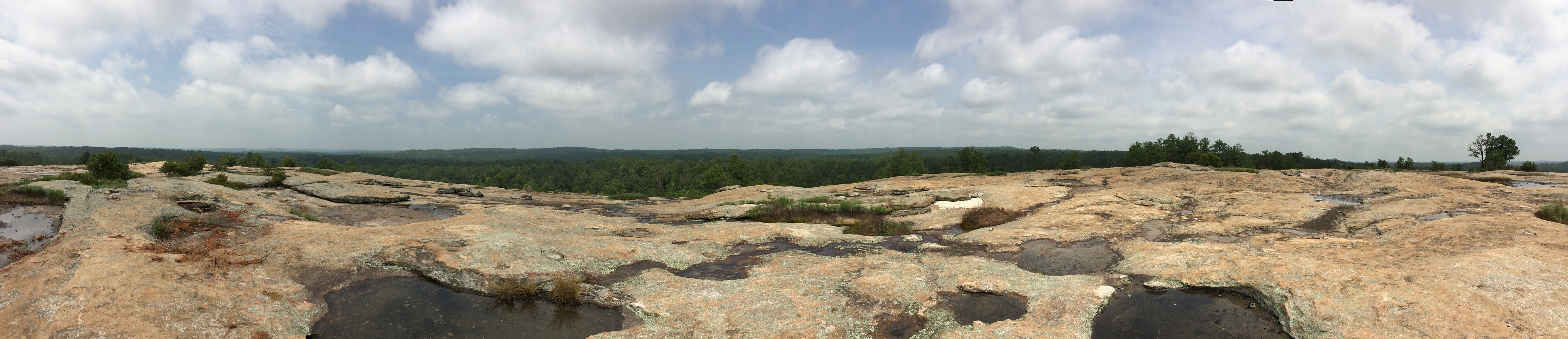 #2 Arabia Mountain Trails: To say that you’d never guess this exposed granite field landscape was in Georgia, much less half an hour from Midtown Atlanta, is an understatement. This barren, moon-like and almost surreal landscape is quite otherworldly. On our first trip, we chose to hike the Mile Rock Trail (but I like to call it Moon Rock Trail) over a mile long and stone cairn-marked granite face to Lake Arabia, then headed back through the forest trail leading to the bike trail, and out from there. It was early afternoon and 98 degrees the first day we went, so we kept our hike to about 4 miles and did not go up the mountain. Our second trip was this weekend. This time we did hike to Arabia Mountain and the summit, which commands a beautiful view of the surrounding area. From the summit you can see that there is another forest trail at the base of the mountain which will take you to Arabia Lake (yes, there are two lakes apparently with similar names.) Both granite trails feature many interesting ecosystems unique to the area, the granite itself is very beautiful with molten patterns. When we hiked this past weekend, we’d just had torrential rains the night before, so there were small ponds in the granite, teeming with life. I can just imagine how magnificent these ecosystems must be in Spring, and we’ll have to check that out. The are also some 30 miles or more of connected bike trails through this general area, known as the Arabia Mountain National Heritage Area, and we’ll be back there with our bikes in the Fall.