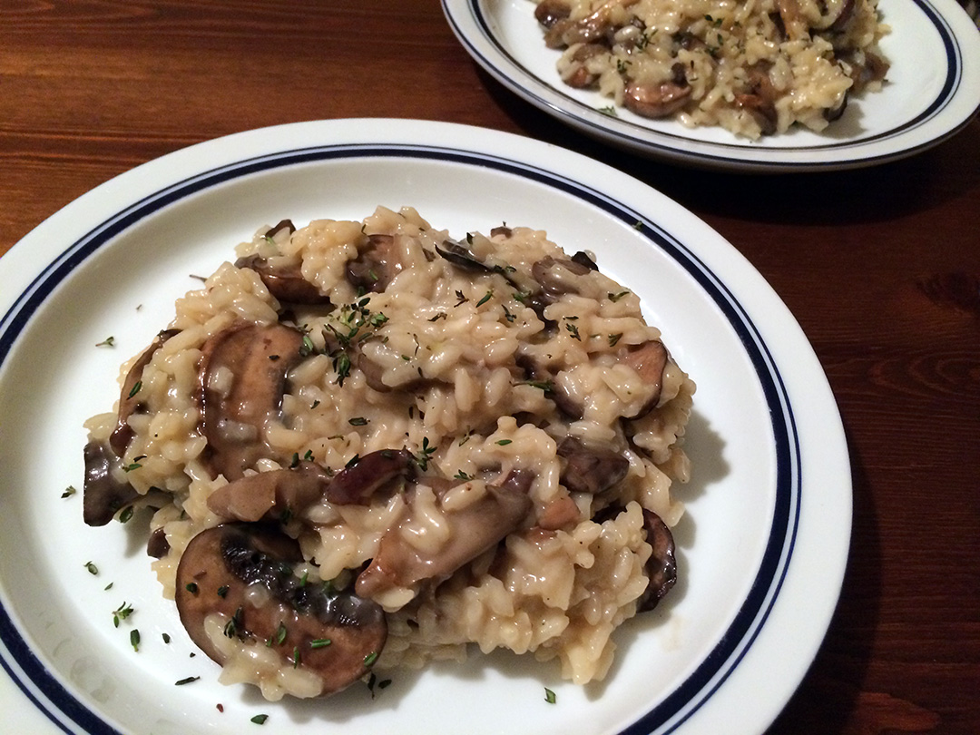 So I challenge those of you out there who have never made it to give it a try. You won’t be sorry you did, and the reward will be well worth your time. In fact, you’ll be wishing you made more so that you’d have leftovers for risotto cakes, but we’ll go down that road at a later date. Here’s how I made my risotto. Mangia!